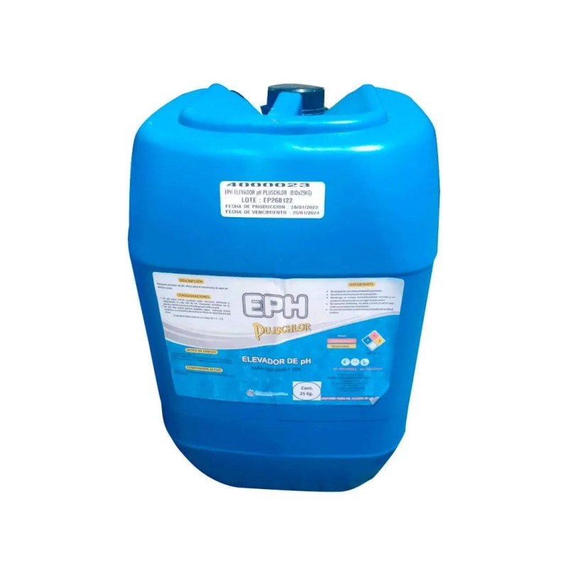 Eph Elevador Ph Plushlor Pe es un producto químico diseñado para elevar y regular el nivel de pH en piscinas y spas. Viene en presentación de bidón de 25 kg y se utiliza para aumentar el pH del agua cuando este se encuentra por debajo del rango recomendado. Mantener un pH equilibrado es esencial para la eficacia de la desinfección, la comodidad de los nadadores y la preservación de la calidad del agua.