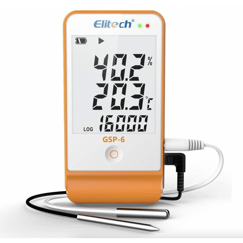 - TEMPERATURA Y HUMEDAD - Equipado con un sensor de temperatura externo y un sensor combinado de temperatura-humedad externo para 3 tipos diferentes de medición de temperatura-humedad (configurados a través del software ElitechLog).