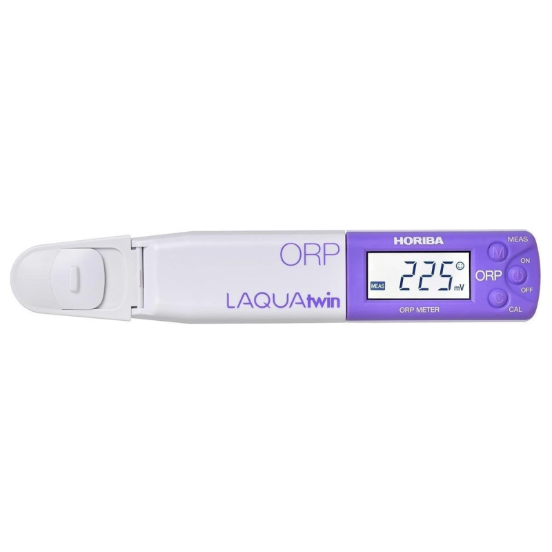 El LAQUAtwin ORP-11 es un medidor de bolsillo para medir el potencial de oxidación-reducción (ORP) y el valor Eh en soluciones líquidas. Su diseño compacto reúne en un solo dispositivo el sensor, pantalla y electrónica, permitiendo realizar mediciones precisas incluso con volúmenes muy pequeños de muestra (desde 0.3 ml)