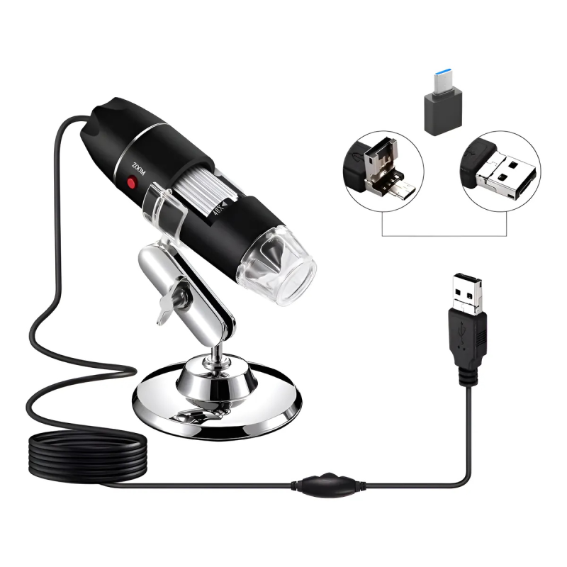 Microscopio Digital Usb 1600x 8 Led Pc Camara 2mp Negro