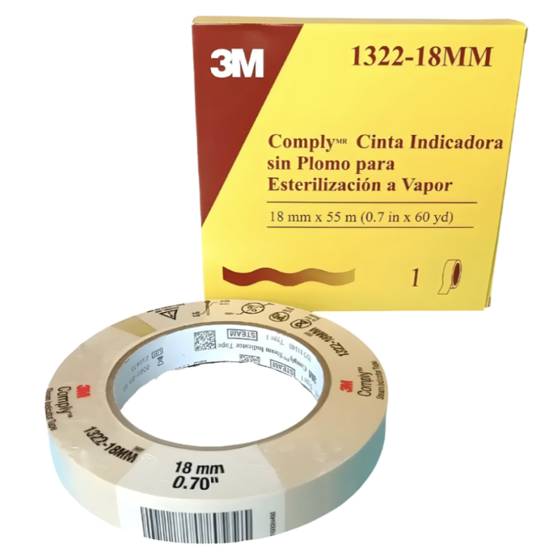 Cinta Indicadora Esterilización a Vapor 18mm x 55 mt 3M – 1322-18MM