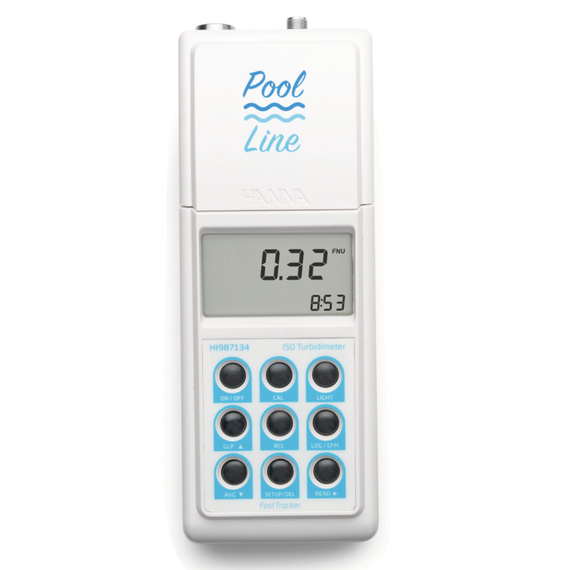 El agua de piscinas, jacuzzis y spas puede tener diversos grados de turbidez, desde imperceptible hasta muy perceptible cuando no se puede ver el fondo de la piscina. La nubosidad o neblina puede ser un síntoma de una variedad de problemas, desde formas biológicas que incluyen algas y bacterias hasta precipitados como el carbonato de calcio que aparecerá a niveles elevados de pH. El contralavado, el reemplazo del cartucho del filtro, la adición de floculantes o un simple ajuste del pH a veces pueden resolver el aumento de la turbidez del agua. El remedio está determinado por la causa del aumento de turbidez. La turbiedad de una piscina, jacuzzi o spa debe mantenerse baja en un valor de 0,5 FNU/NTU o menos.